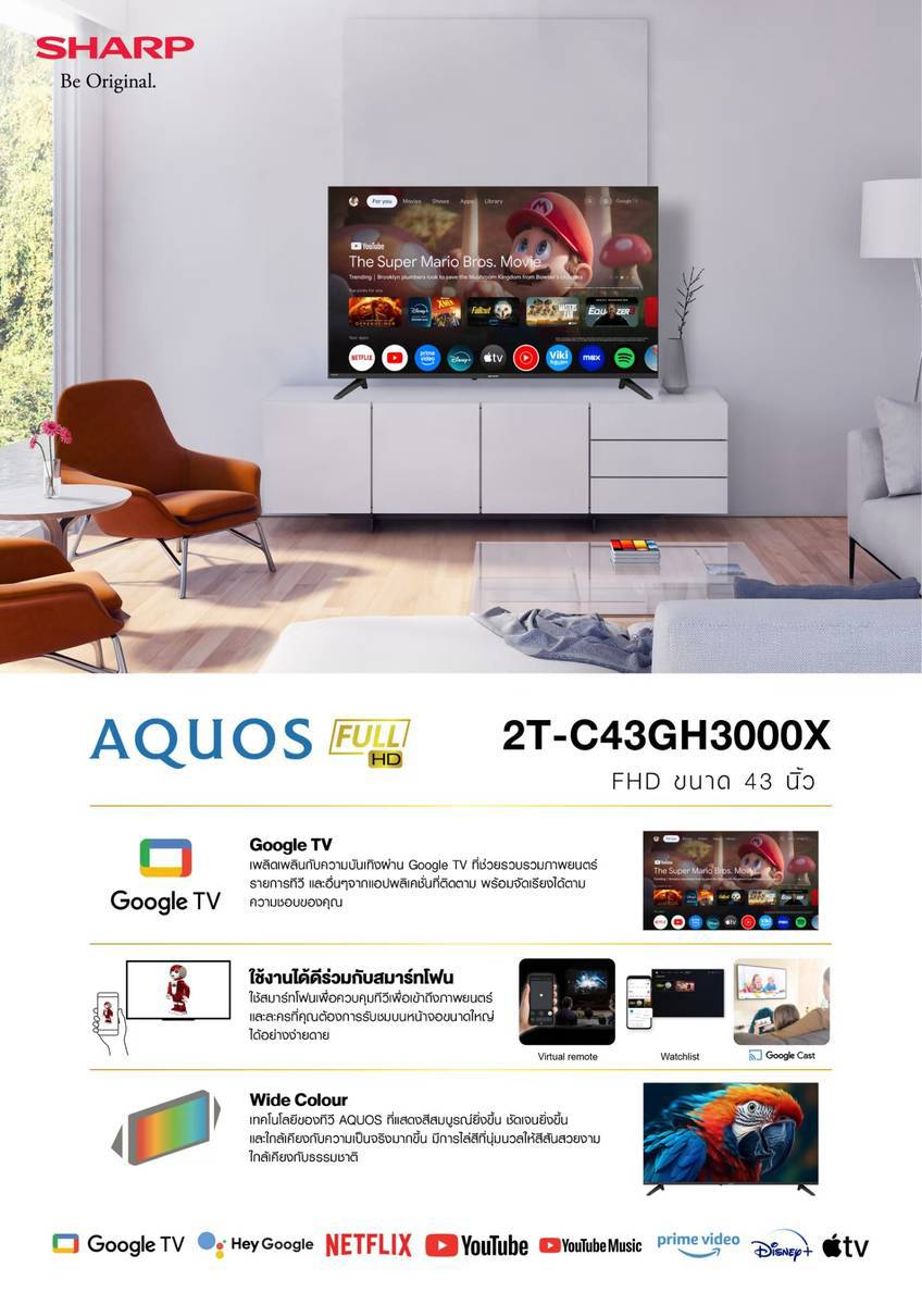 SHARP Google TV Full HD รุ่น 2T-C43GH3000X ขนาด 43นิ้ว